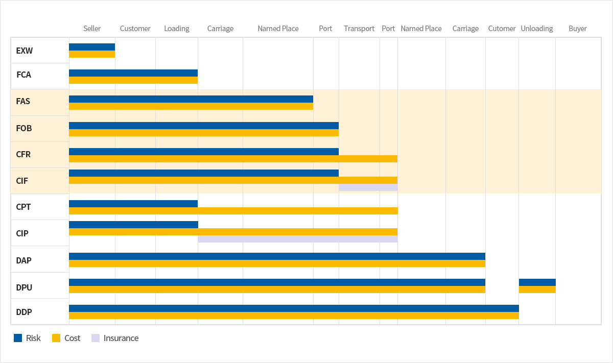 | 수출상은 물품이 선측이 인도될 때까지 비용과 위험을 부담 | |